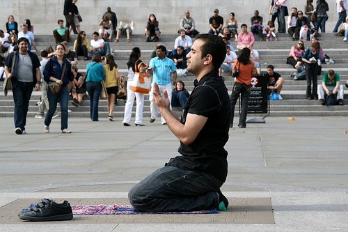 Then, and I recognized the characteristic movements at once, he began to pray. He was an observant Muslim and it was time for the daily Zuhr prayer. He had oriented himself more or less facing east, interstate traffic be damned.
